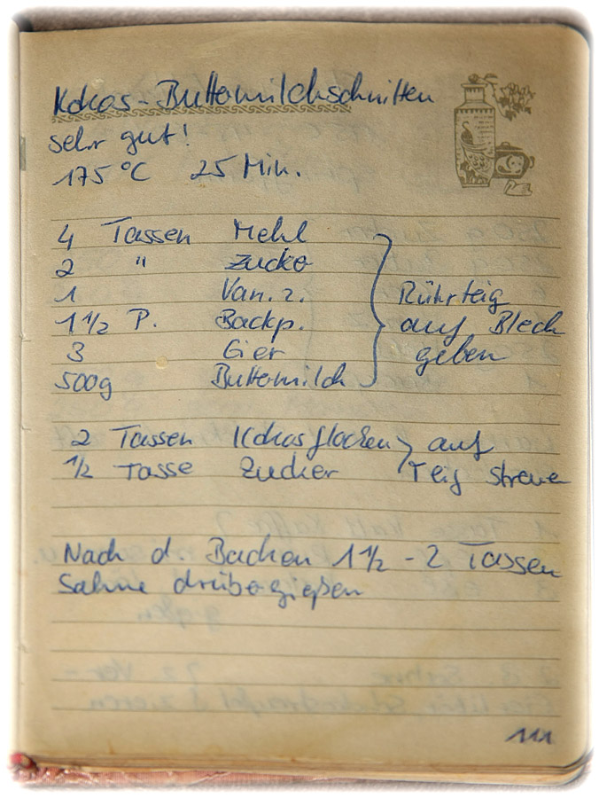 Meine Rezepte Apfelchips Apfelleder Apfel-Schokomuffins mit Walnüssen Couscous-Salat (Taboulè) Etiketten Fliedersirup Holunderblüten-Gelee Holunderbeer – Likör Holunderblütensirup Kokos-Buttermilchschnitten Käsekuchen mit Himbeeren Libanesischer Orangenkuchen Quittenchutney Quittenbrot Quitten-Orangen-Kuchen Rosengelee Spanische Kartoffelsuppe Schokoladenkuchen Vatikanbrot (wenn man den Ansatz geschenkt bekommt) Zwetschgenkern-Amaretto